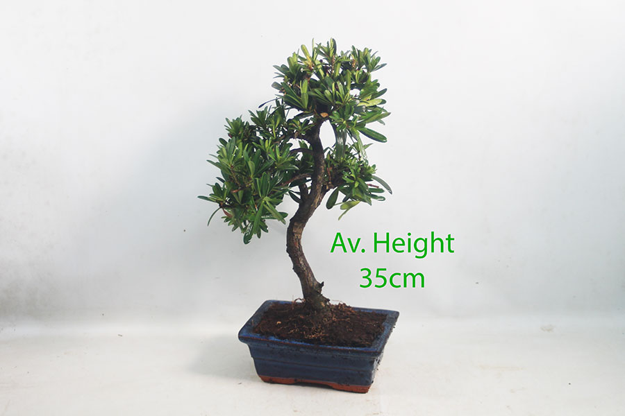 The Podocaprus is an evergreen tree with stiff, thick foliage similar to Yew trees and an upright growth habit. The most commonly found species used in bonsai is Podocarpus Macrophylla.