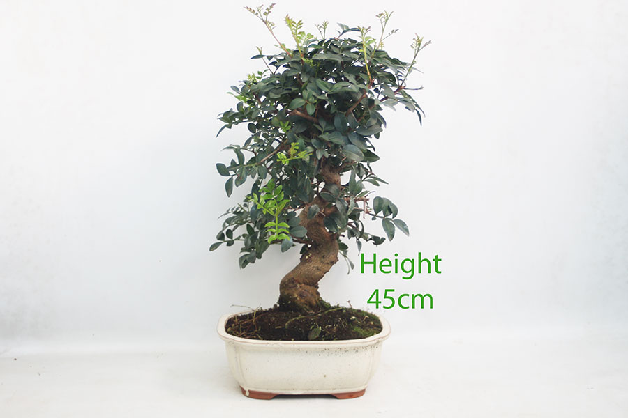 The leaves are paripinnate – a bit like our native Ash and Rowan, almost feather-like. This means that what looks like a small branch is actually a single leaf. Look closely and you will see that the growth is actually quite course, but it works as a bonsai as each leaf appears as a branch. When pruning, you need to understand this. Pruning each leaf back at the first few leaflets will not make them produce new buds on the leaf.