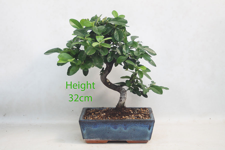 Water daily in hot weather. Keep the soil moist at other times. As with all bonsai trees, when you water please give them plenty and keep watering until water comes out of the holes in the bottom of the pot.